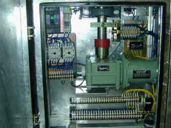 6.補助開閉器回路(左側写真、下部端子台)と制御回路(左側写真、上部端子台)を